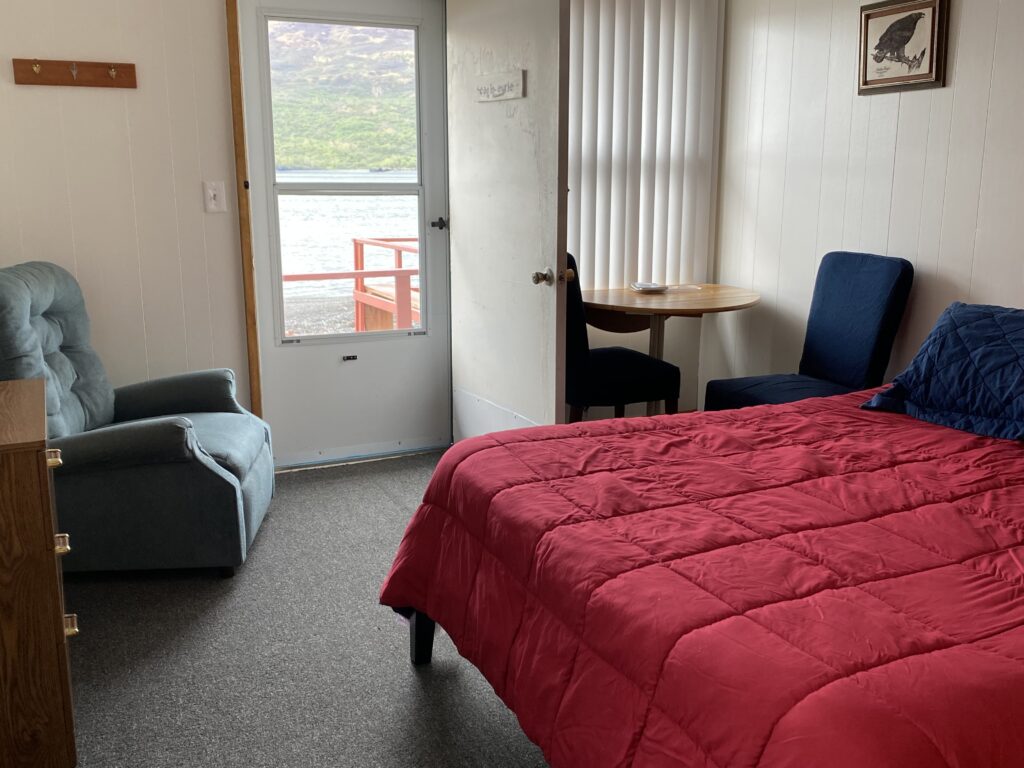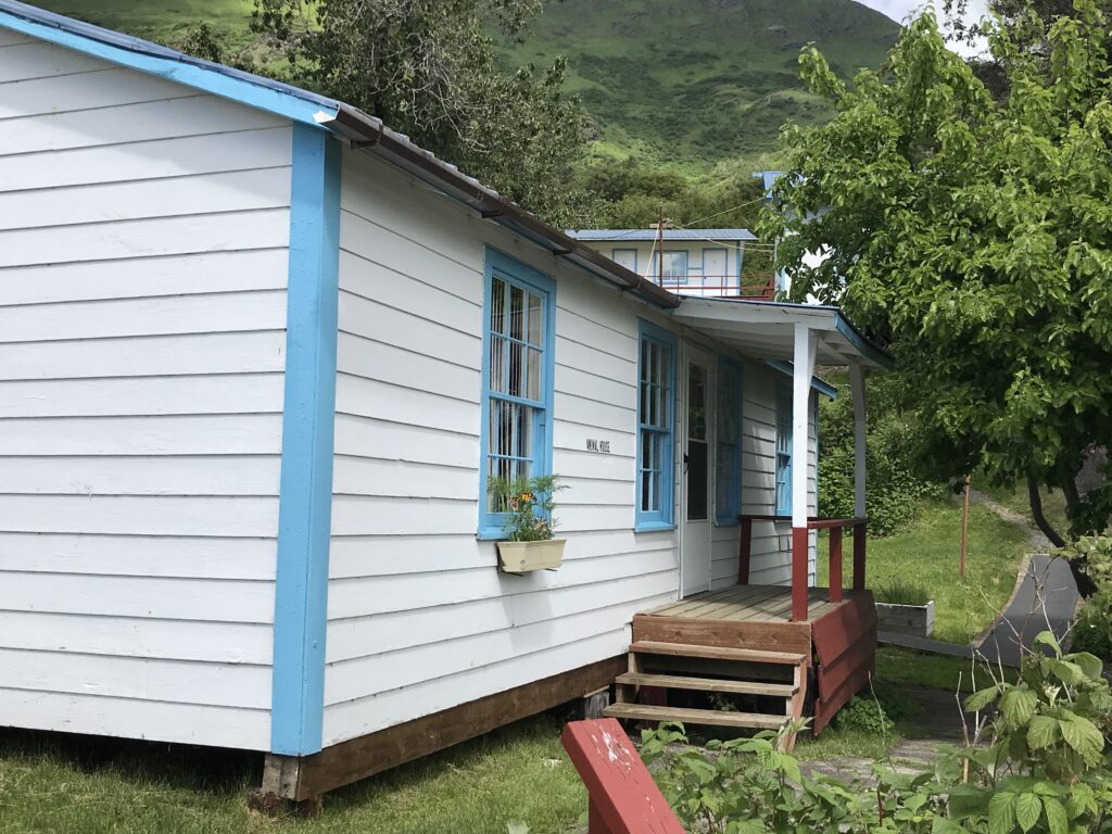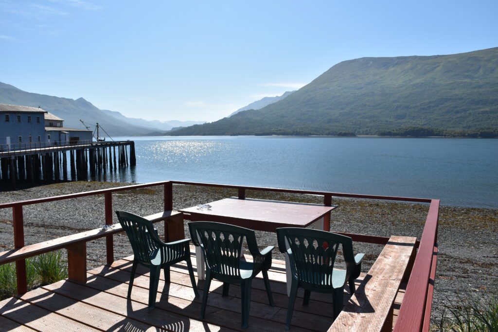 The dining hall is not only the eating area but also hosts guest rooms on one end. Located right off the beach with a wrap around porch, there is plenty of room to lounge and enjoy the scenery. Just as in cannery days, this building is full of life and great smells. Eat buffet style on refurbished cannery dining hall tables.